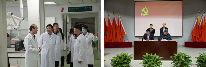 市药监局周立新副局长参加活动并致辞、国家药典委兰奋秘书长讲话,分别对联合党日和联学共建活动的开展提出了要求和希望。国家药典委第二党支部书记张军、市药检院业务技术办公室党支部书记江志杰依次就联学共建活动提出计划、做出承诺,共同签订了《国家药典委员会和北京市药品检验研究院基层党支部党建工作结对共建协议》,并交换了支部党员名册。仪式结束后,国家药典委的领导和党员参观了北京市药检院科普法宣基地和实验室。在参观过程中,双方就共同关注的药品标准研究进行了充分的探讨与沟通,为后续更好地开展党建合作,共同推进国家药品标准高质量发展夯实了基础。