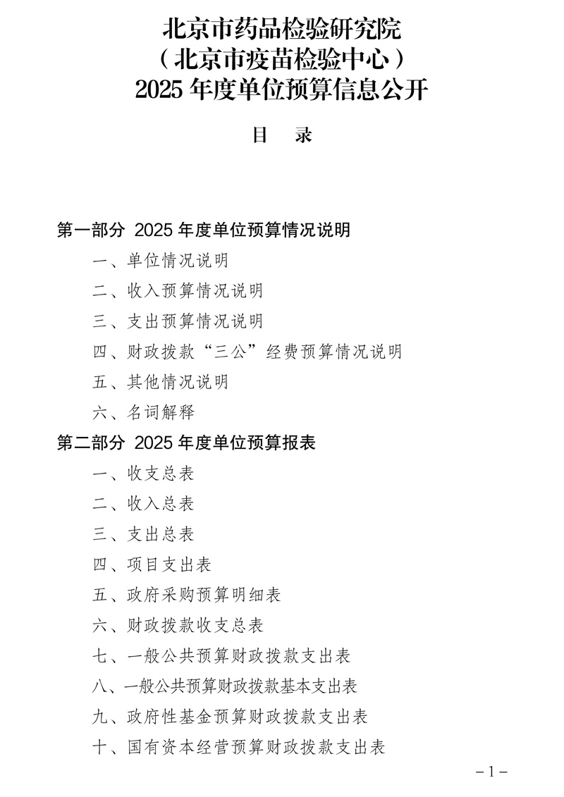 北京市药品检验研究院(北京市疫苗检验中心)2025年预算公开附表